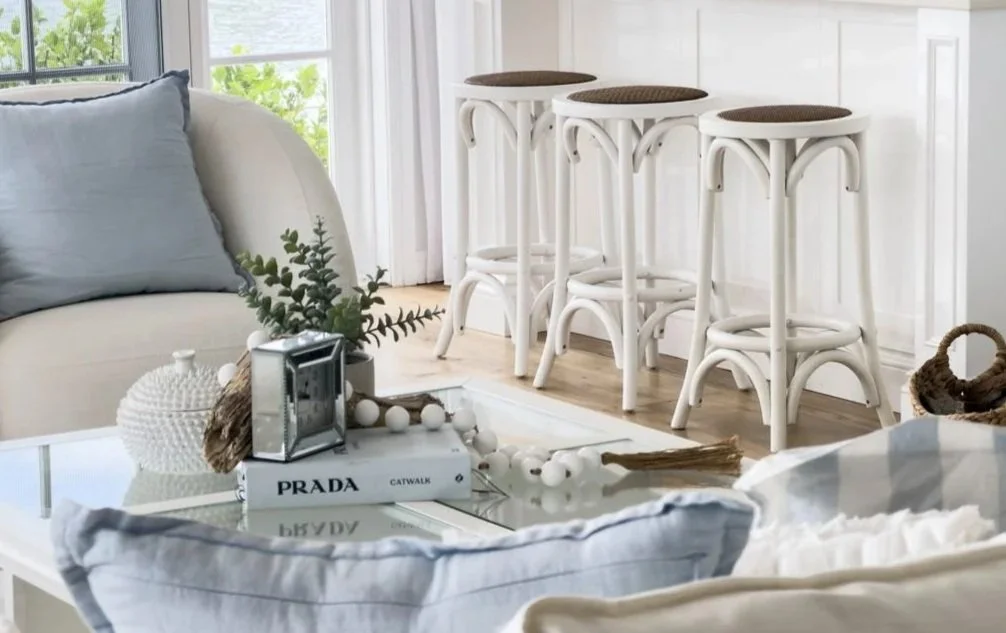 A blend of existing furnishings and carefully selected styling pieces to elevate the space while the home remains lived in.